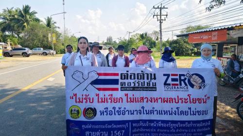 วันพฤหัสบดี ที่ 16 มีนาคม 2569 นางสาววิไลพรรณ สุ่มแก้ว พัฒนาการอำเภอท่ายาง พร้อมด้วยเจ้าหน้าที่พัฒนาชุมชนอำเภอท่ายาง จัดกิจกรรมปลุกจิตสำนึกการป้องกันการทุจริตและประพฤติมิชอบ โดยภายในกิจกรรมมีการเดินรณรงค์ต่อต่านการทุจริต กิจกรรมการปลูกผักสวนครัว กิจกรรมการทาสีโรงเรียนซึ่งมีกลุ่มเป้าหมายได้แก่ประชาชนในหมู่บ้านเขากระปุก ตำบลเขากระปุก อำเภอท่ายาง จังหวัดเพชรบุรี ณ หมู่บ้านเขากระปุก หมู่ที่ 3 ต.เขากระปุก อ.ท่ายาง จ.เพชรบุรี